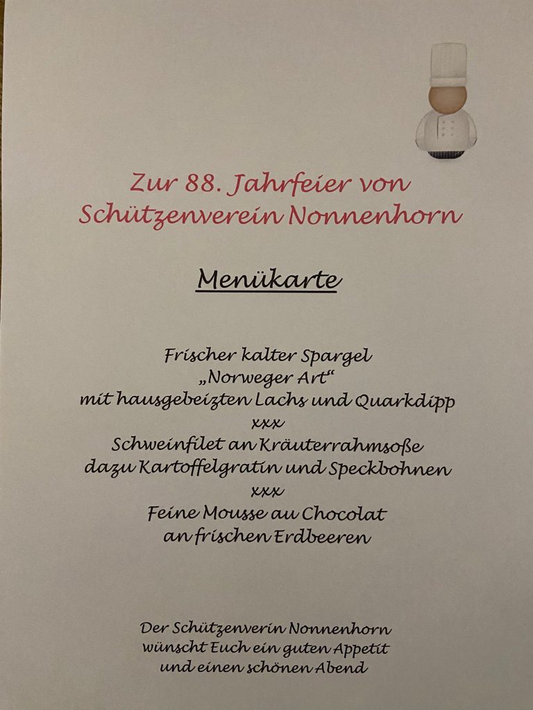 Der Abend beginnt um 19 Uhr mit der Preisverleihung an unsere Schützen. Danach halten wir unsere Generalversammlung ab. Anschließend feiern wir in gemütlicher Runde das 88-jährige Bestehen des Vereins.